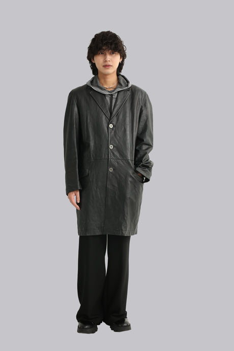 ''VERSACE'' LEATHER SINGLE CHESTERFIELD COAT