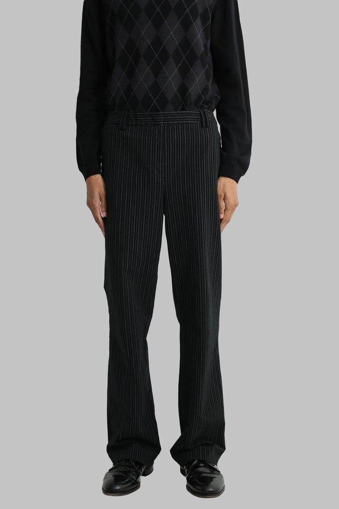 BLACK STRIPED FLARE TROUSERS