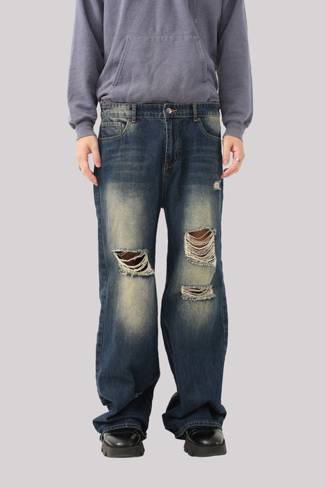 CRASHED WIDE DENIM PANTS