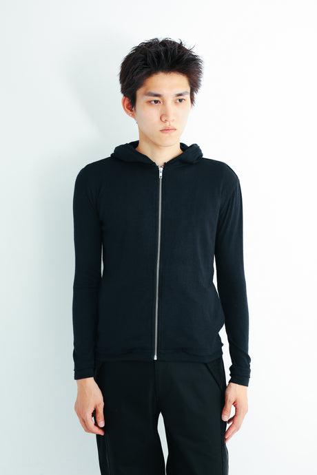 SECOND SKIN HOODED CARDIGAN - BLACK