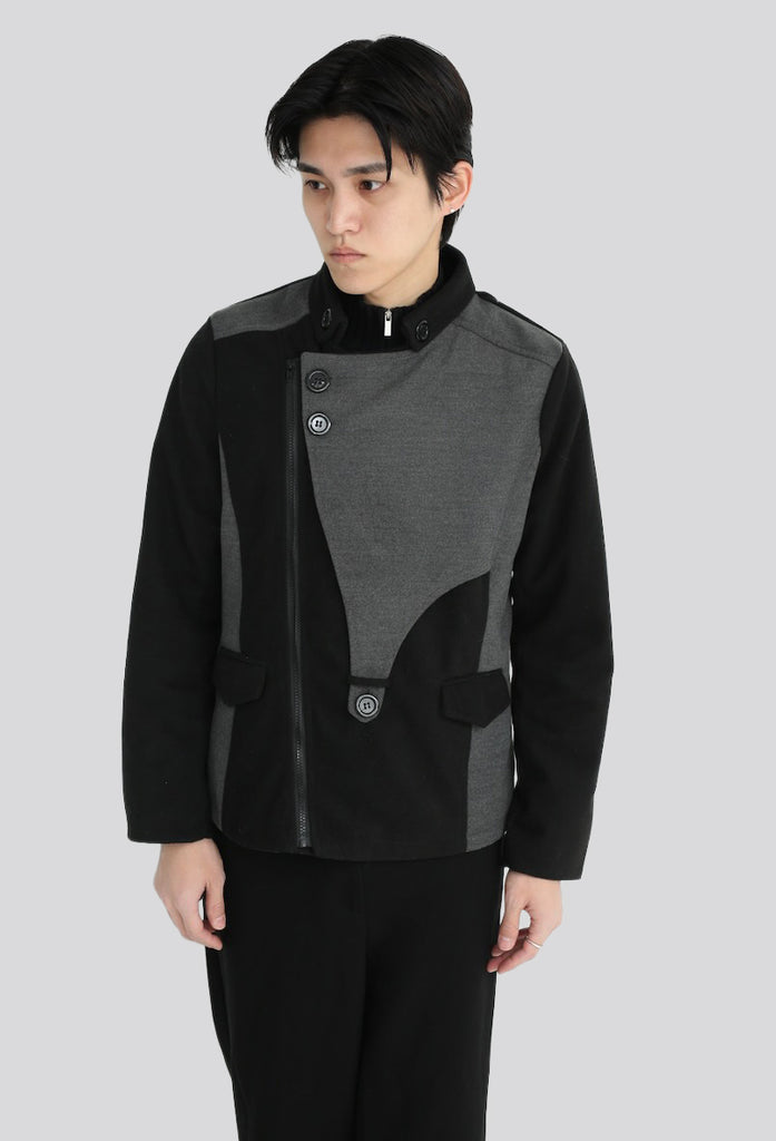 LEATHER SWITCHING WOOL TRACKER JACKET