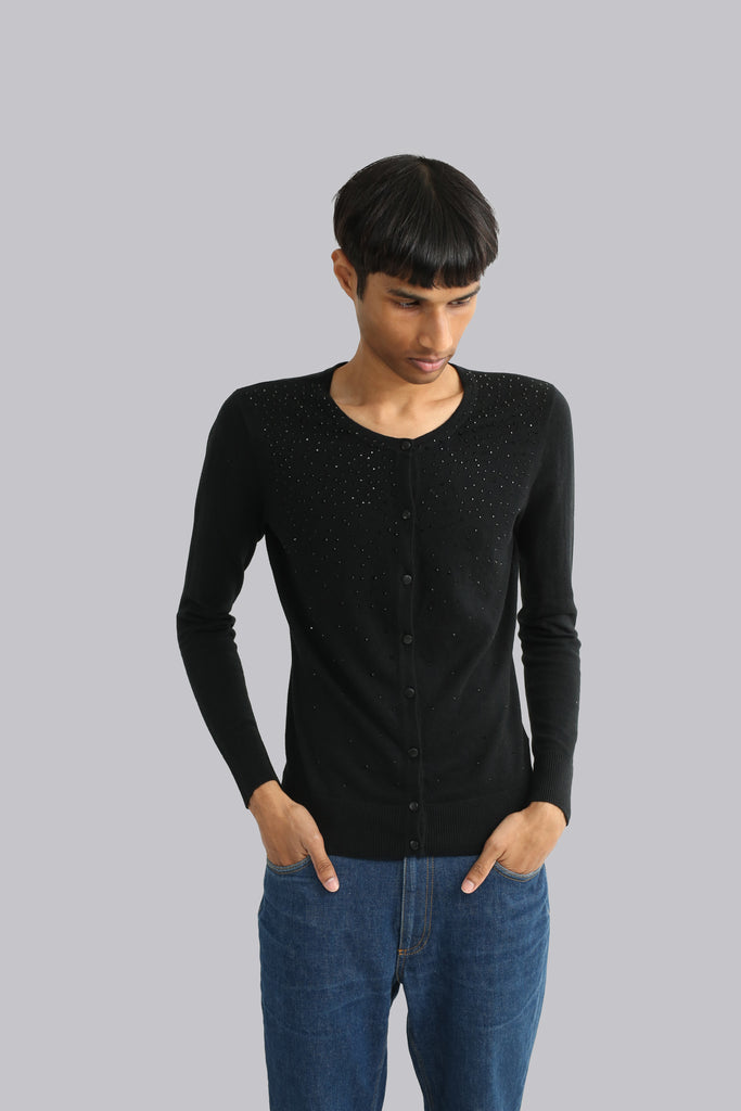 BEADED ROUND NECK CARDIGAN