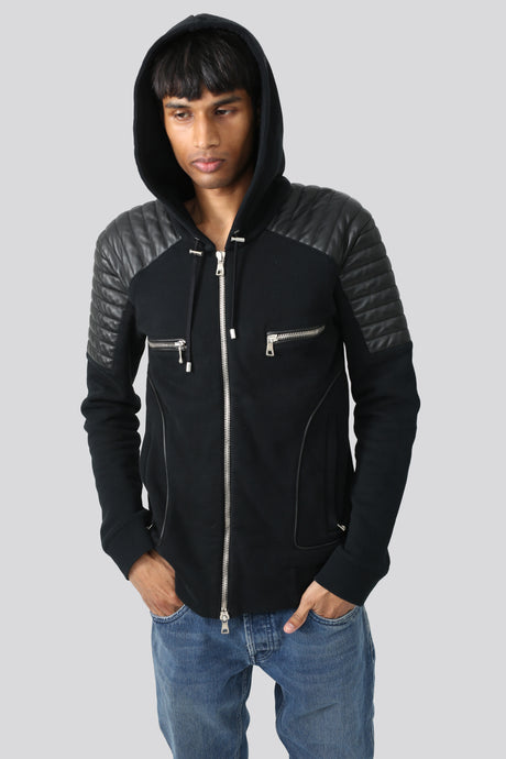 "BALMAIN" LEATHER ZIP HOODIE
