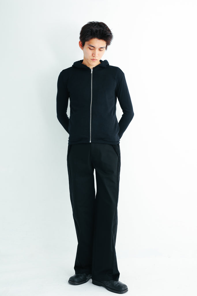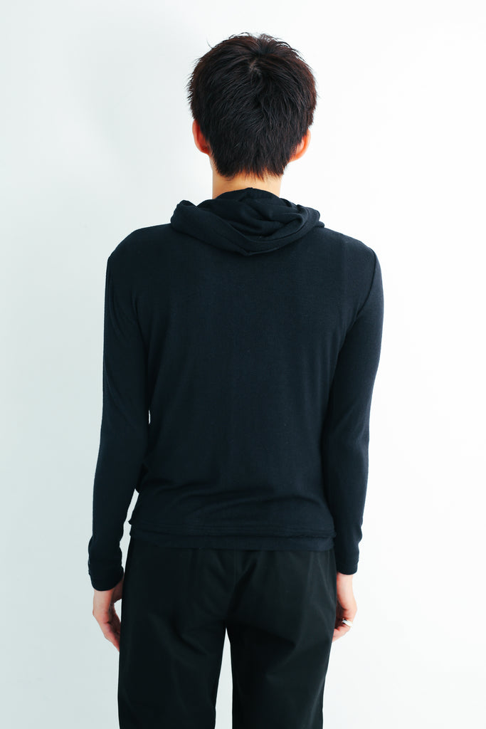 SECOND SKIN HOODED CARDIGAN - BLACK